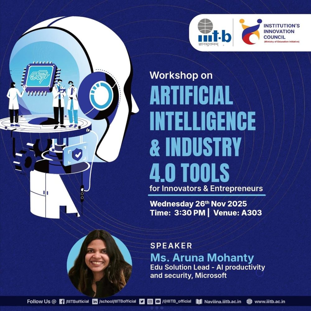 November 26, 2025: “Workshop on Artificial Intelligence & Industry 4.0 Tools” by Ms. Aruna Mohanty, Edu Solution Lead – AI Productivity & Security, Microsoft.