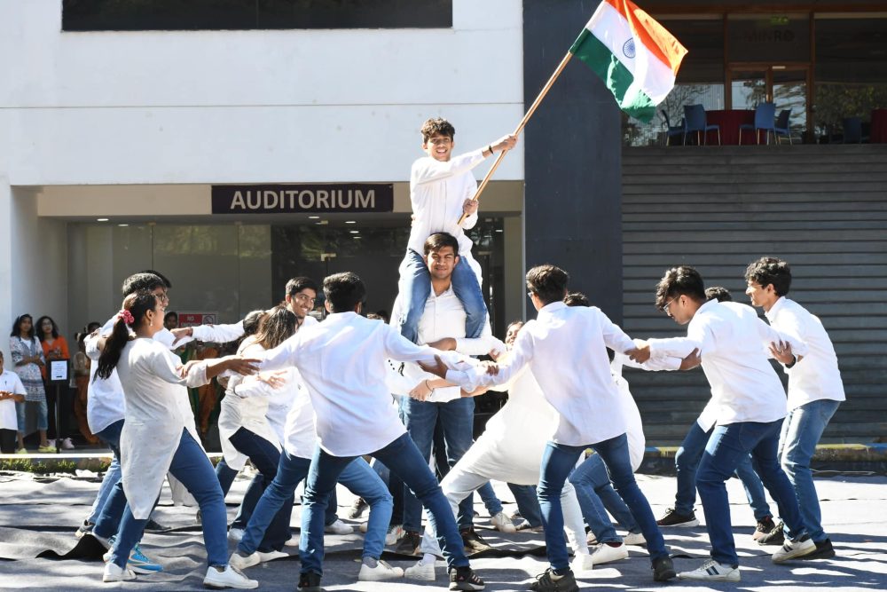 The cultural performances showcased India’s rich heritage and artistic expression. Highlights included a heartfelt poem recital by Aishwarya Sharma, a soulful musical performance by Symphony, IIIT-B’s Music Club and a traditional Kamsale dance performance by children from Government School, Shantipura, Electronics City Phase 2 and a high-energy dance performance by first-year students