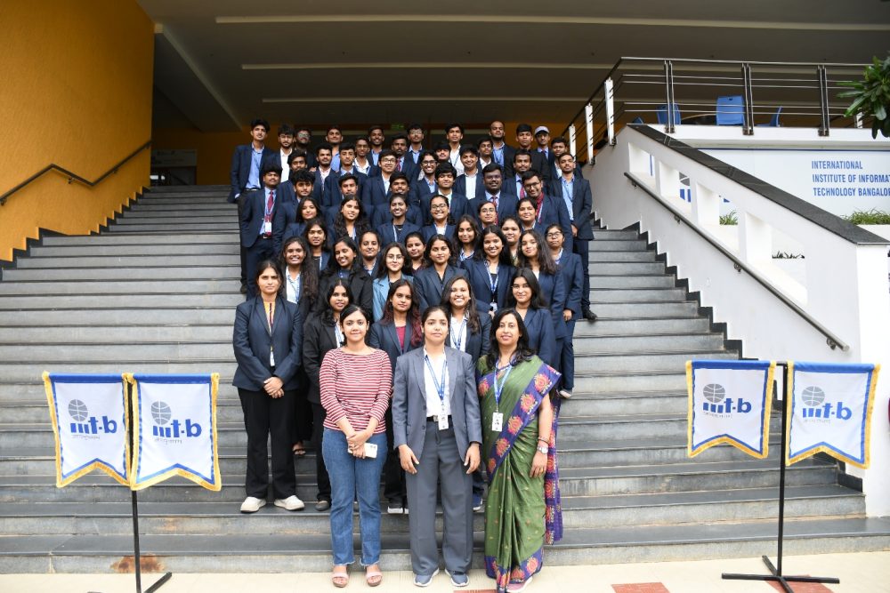 IIIT-Bangalore recently welcomed a group of students from BMS College of Commerce and Management as part of an educational-cum-industrial tour aimed at fostering academic and industry exposure. During their visit, the students attended an informative session on IIIT-B, gaining insights into the Institute’s academic programmes, research opportunities, and state-of-the-art infrastructure. They also toured the Centers of Excellence and research labs, where they witnessed live demonstrations of cutting-edge projects and ongoing research initiatives.