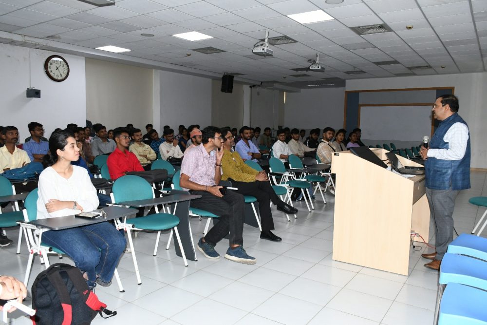 IIIT-B recently hosted an engaging Invited Talk titled “A Chemical Flavor for Networks”, presented by Prof. Anjan Kr Dasgupta, a distinguished retired professor from the University of Calcutta. The session explored fascinating insights into evolutionary chemical structures, biomolecular formations, and the physical principles underlying chemical reaction networks, including the Onsager approach. Attended by both faculty and students, the talk sparked deep intellectual curiosity, leading to thought-provoking discussions. Prof. Dasgupta’s explanations not only shed light on complex scientific concepts but also encouraged attendees to delve further into the interdisciplinary connections between chemistry and network structures. The interactive session concluded with an engaging Q&A, where he adeptly addressed queries, leaving the audience with new perspectives and a thirst for further exploration.