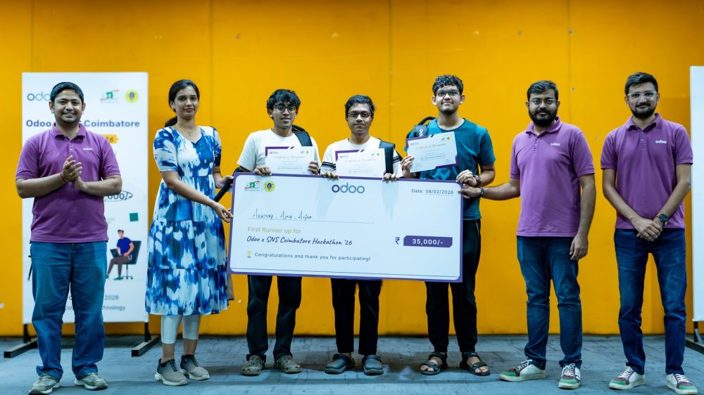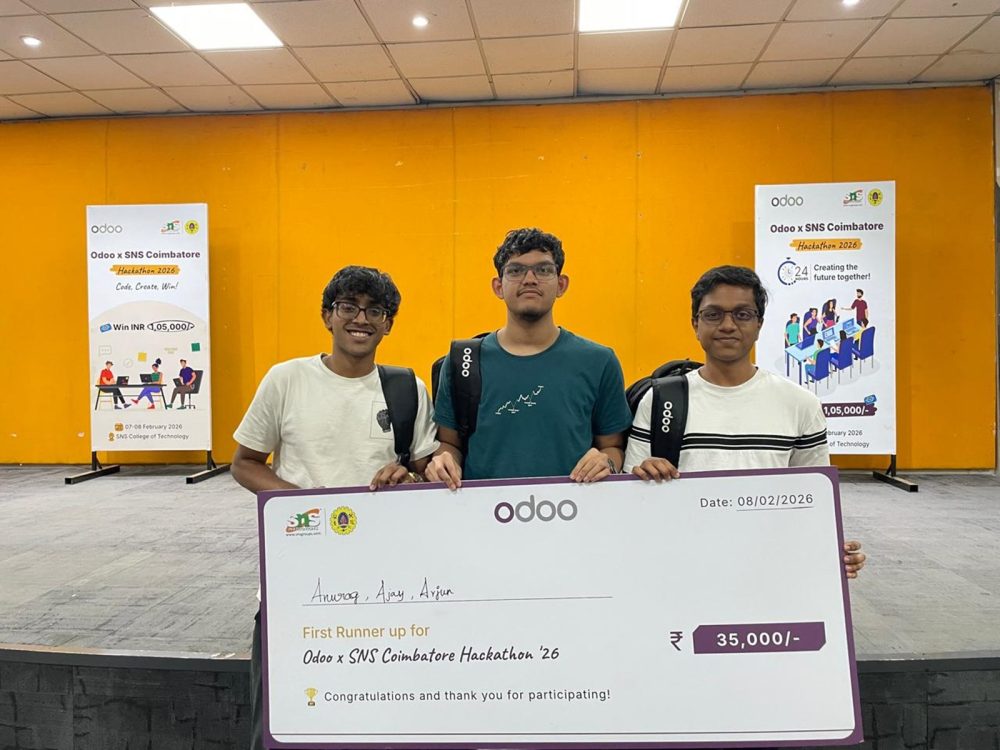 We are happy to share that our students, Ajay Javali (B.Tech.), Arjun Sai (B.Tech.), Anurag Rao U (Integrated M.Tech.), and Akshay K M (Integrated M.Tech.) secured the First Runner-Up position at the Odoo Hackathon 2026, held recently in Coimbatore.