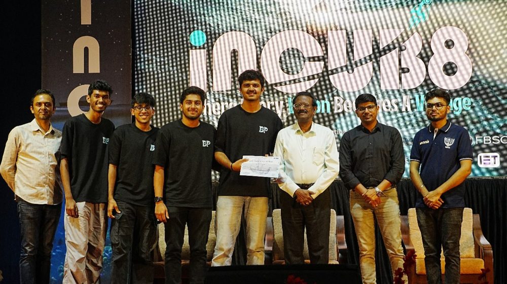 Our 2nd-year B.Tech. student team “BP,” comprising Pragun K Kirani, Varshith M Gowda, Ajay Javali , and R S Tarun, participated in Aarambh, an ideathon at Incub8, NITK, and won first place. A total of 295 teams across India participated in the event.