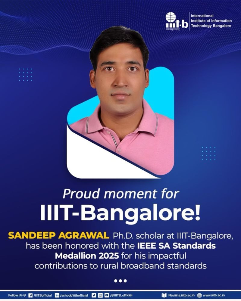 Our Ph.D. scholar, Sandeep Agrawal, has been selected as one of the IEEE SA Standards Medallion Recipients for his exceptional leadership and contributions to the development of rural broadband standards and solutions.