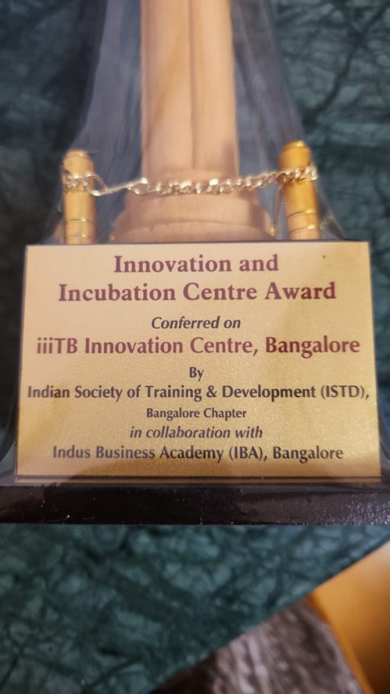IIIT-Bangalore Innovation Centre has been honored with the Innovation and Incubation Centre Award by the Indian Society of Training & Development (ISTD), Bangalore Chapter, in collaboration with the Indus Business Academy (IBA), Bengaluru)